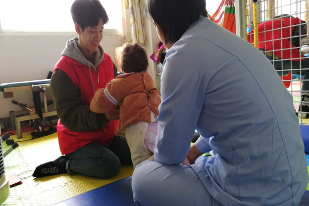 康复学院一行师生受到河南省儿童医院田护士的热情接待,对医院四个康复病区分别进行参观,在这过程中了解到,患者主要为脑瘫和智力发育迟缓的患儿,每个病区均配备PT大厅、作业治疗室、言语治疗室、理疗室等。设备先进齐全、环境优美,非常适合儿童康复训练。随后十名学生前往四个病区去了解不同病情的患者和家属。短暂的相处同学们很快融入到孩子们的世界,陪他们一起治疗,鼓励他们克服治疗中的困难。在与家长的沟通中发现,他们需要每天带着孩子来医院坚持做康复治疗,患儿无疑加重了整个家庭的经济负担,但他们依旧对孩子的康复抱有很大的希望。