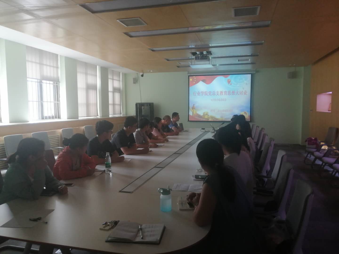 6月19日中午,行业学院党总支全体教师在行政楼第四会议室召开6月份教育思想大讨论专题会议。会议由行业学院党总支书记郭立青主持。