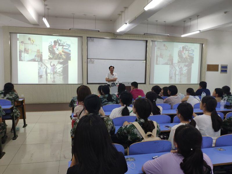 9月4日-5日由康复医学院院长张东、副院长刘强共同开展了两节院长课堂: “康复初认知-娓娓道来话康复”,面向2019级本科生和专升本学生介绍了康复治疗专业发展前景、社会需求状况以及康复学院的发展概况、师资力量、取得的成就及人才培养方案及课程体系,并针对前期调研结果,进行有针对性的互动答疑讨论,获得了学生的阵阵掌声。