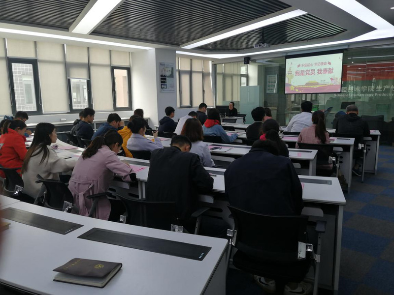 10月16日中午12:20分,行业学院党总支书记郭立青,以《不忘初心、牢记使命——我是党员 我奉献》为题,为行业学院全体教师讲授专题党课。