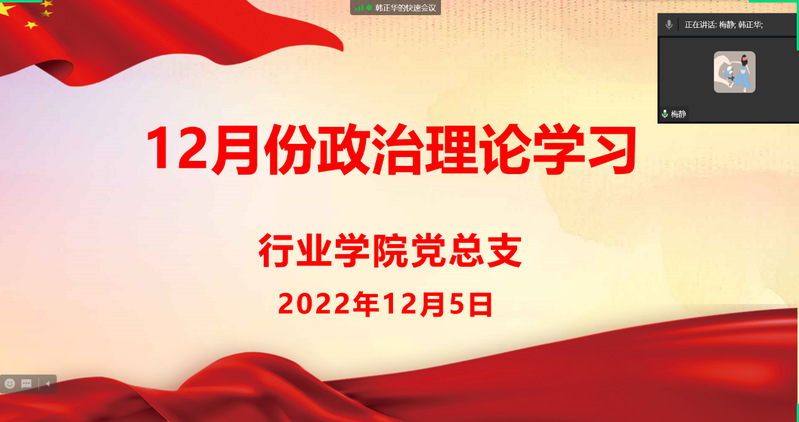 12月5日上午,行业学院党总支于行业学院党总支委员企业微信平台召开12月份理论学习中心组学习会议,会议由行业学院党总支书记郭立青主持,理论学习中心组全体成员参加会议并作交流发言。