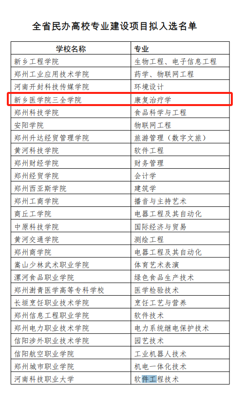 近日,河南省教育厅发布《关于民办教育相关工作项目遴选结果的公示》通知,我院康复治疗学专业被确定为河南省2024年民办普通高等学校学科专业建设资助项目。我院高度重视学科专业建设,科学谋划学科专业布...