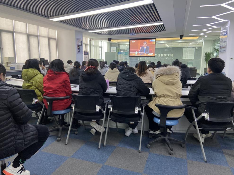 康复学院党支部与口腔技术学院党支部联合组织教职工共41人于2月25日上午10点在口腔数字化实训中心观看全国脱贫攻坚总结表彰大会。